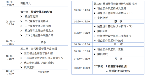 三代鋁合金精益管件應(yīng)用與實(shí)踐課程安排(1天)